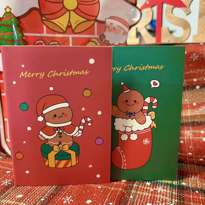Two adorable mini notebooks with gingerbread man designs - one pink with "Merry Christmas" and one green with candy cane. Perfect for notes, drawings, or holiday wishes!