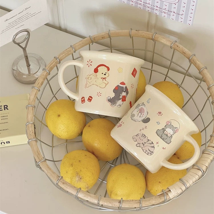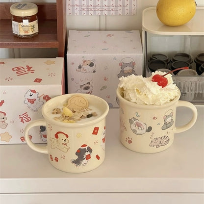 Adorable Cat & Dog Designs: These charming cream-colored ceramic mugs feature two delightful designs - playful cats with music notes and paw prints, or festive dogs with the Chinese character "福" (Fu - meaning fortune/blessing) celebrating Chinese New Year.
