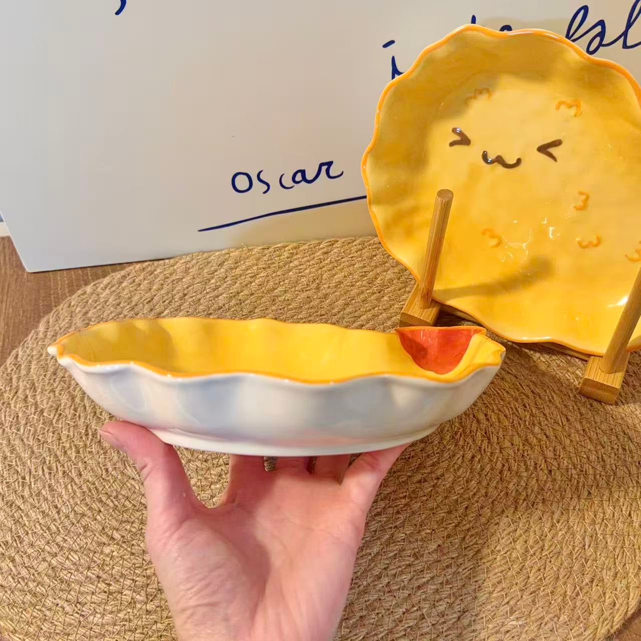 Beautiful Yellow Color: The plate features a vibrant sunny yellow color that resembles a perfectly golden fried shrimp, creating a cheerful and appetizing appearance. The glossy glaze finish adds a beautiful shine.